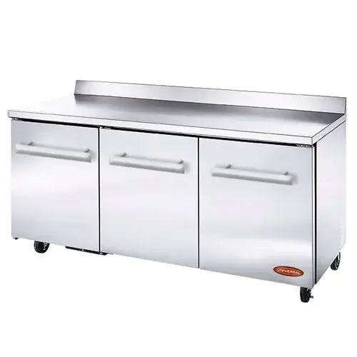 With 3 Cabinet doors, and 6 Shelves the 92" Work Top Refrigerator (Beverage Air WTR93A) is one of the most practical units available to maximize space in the kitchen and ensure that you have everything you need on hand at any given time. High quality metals and internal components work together to give you lower operating costs and a machine that performs better at colder, more consistent temperatures. The unit is made from stainless steel for a piece of equipment that will not rust, corrode or tarnish even over years in a professional food service kitchen. This unit is must, in a high volume kitchen that needs to make the most of its kitchen.