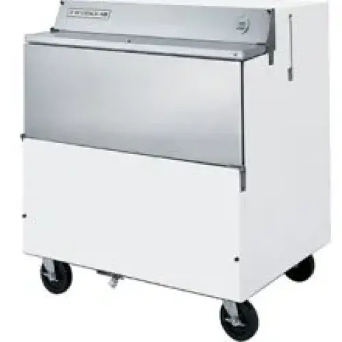 A forced-air milk cooler keeps milk appropriately chilled during serving. This Stainless Steel 49" Single Access Forced-Air Milk Cooler (Beverage Air SMF49Y-1-W) is ready for any school’s restaurant department. The unit is easy to push around on its included heavy-duty casters. Your milk cartons will always be cool because of the balanced, forced-air refrigeration system and dual evaporator. A cold-air blanket will always go over your milk to ensure that each carton is drinkable and less than 36-38° F. This unit is a simple to clean with its centrally located floor drain that connects to drain hose with hose adapter. This milk cooler comes pre wired and with an 8’ long cord and plug set. This items carton capacity is five hundred seventy six.