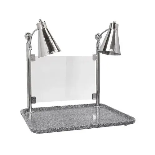Prepare your hot food while keeping it at foodsafe temperatures and ready to eat with the Buffet Enhancements 010HFD-GG30RTSG 30" carving station! This carving station features a rectangular gray granite base that accommodates a variety of foods and dishes, and the two attached flex lamps utilize shatter resistant bulbs to ensure your food is both hot and safe. A sneeze guard is also included so that your staff can prepare food around customers without worrying about airborne contaminants. Please consult the Specification Sheet for additional details.