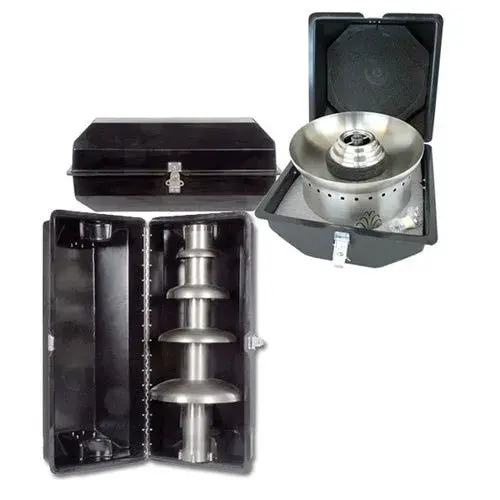 Add an eye-catching centerpiece to your business with the Buffet Enhancements 1BACF40 stainless steel 4 tier commercial chocolate fountain! This 40" tall fountain features a fine brushed exterior with a 22 lb. capacity, letting you load up on a large quantity of smooth, delicious chocolate. Unlike other chocolate fountains, the 1BACF40 easily disassembles and packs into the included ABS carrying case, making it perfect for commercial use and transportation from event to event. Designed specifically to provide reliable durability through repeated commercial use, this fountain's heavy duty main shaft bearing and 1 hp direct drive motor ensure long-lasting durability, while the chocolate is kept between 105 and 110 degrees Fahrenheit for maximum flow and flavor. A precision stainless steel auger circulates the chocolate from the bottom of the fountain back to the top, and the top cap, auger, outer tube, and tiers are all dishwasher safe for fast and easy cleaning. Please consult the Specification Sheet for additional details.