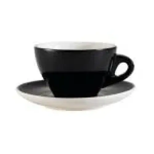 The C.A.C. China E-11-BLK - Venice Coffee Cup and Saucer Set 6-1/2" - (24 Sets Per Case) is an essential item to have in any establishment that serves piping hot coffee, tea, espresso, or hot chocolate. This Cup and Saucer Set comes in a case of 24 set(s).