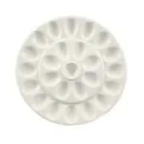 The C.A.C. China PEG-R21 - Accessories Egg Holder Plate 13" - (1 Dozen per Case) is an essential item to have in any establishment that holds hard boiled eggs, deviled eggs, chocolate eggs, or even various assortments of caviar or escargot. This Egg Holder Plate comes in a case of 1 dozen.