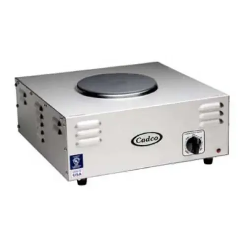 Nearly every kitchen has a need for a cast iron range, whether it is household or commercial. Cadco’s 9-1/2" Hi-Power Single Cast Iron Hot Plate (CSR1CH) is perfect for kitchens that need a little extra help. It is equipped with 1 burner that is 7-1/8” in diameter. While the hot plate is constructed out of cast iron making it extremely easy-to-clean. With a manual knob, you are able to control the heat and get the job done. Cadco Portable Cast Iron Hot Plate with 7.125-inch element and high-tech thermostat offers sensitive heat control to keep food simmering or boiling. Solid element delivers heat evenly to pot/pan. 120-volt and 1500-watt. UL Safety & Sanitary/C-UL. Elite Restaurant Equipment ensures that this product, CSR1CH, is easy to use and install.