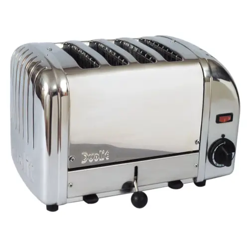 Cadco 4-Slot Toaster is equipped with heavy duty KoverTec mica elements, a manual timer control, a keep-warm feature with a manual ejector knob. Neon indicator light glows during toasting process. Separate selector buttons for 2 or 4 slot operation. 220-volts and 2350-watt. UL, NSF, CSA. Elite Restaurant Equipment ensures that this product, CTS4, is easy to use and install.