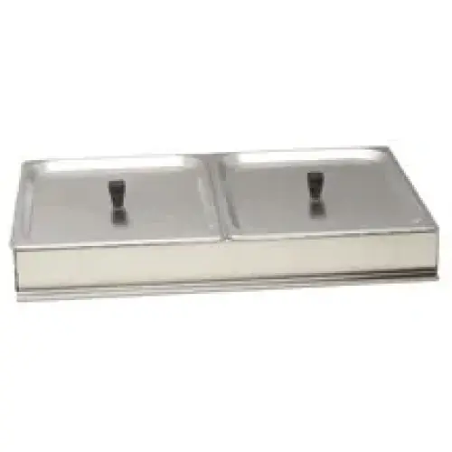 Two half size (2.5" deep) stainless steam pans with stainless steel lids and Steam Pan Holder. Elite Restaurant Equipment ensures that this product, ITBS2, is easy to use and install.
