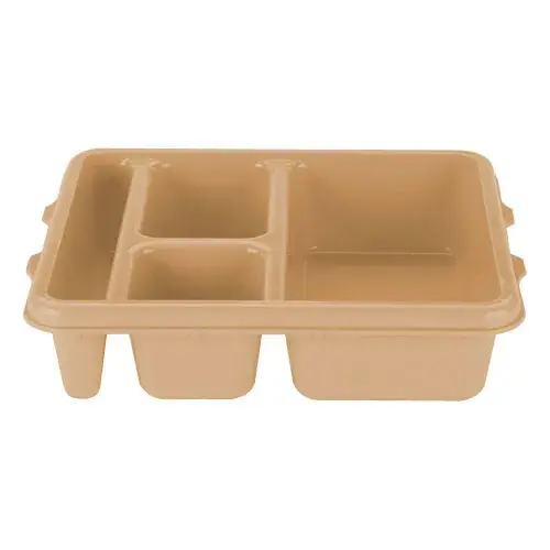 This Cambro 14" x 14-15/16" Polycarbonate Compartment Tray [14187TRCW-133] is ideal for any cafeteria-style meal. This 7 compartment tray holds plenty of food and can keep hot and cold foods separate. The tray is made using co-polymer plastic which is break-resistant. This tray is for general use and can be used any place with a cafeteria. Comes in a set of 12.