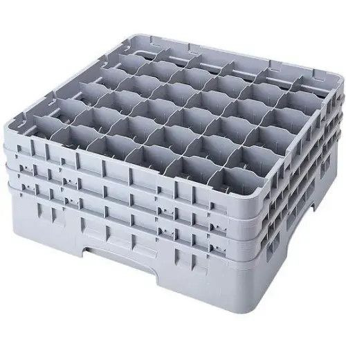 This Cambro Stemware & Tumbler Glass Rack - Camrack [36S418-163] is a dish rack for cups with 36 compartments. Each compartment can hold a cup with a max diameter size of 2 7/8 inches and a max height of 4 1/2 inches. This square shaped cup rack fits in most commercial dish washers and makes cleaning cups and other glassware extremely easy. Thanks to the polypropylene plastic used in this construction, this cup rack is extremely durable and heat resistant. Comes in a set of 5.