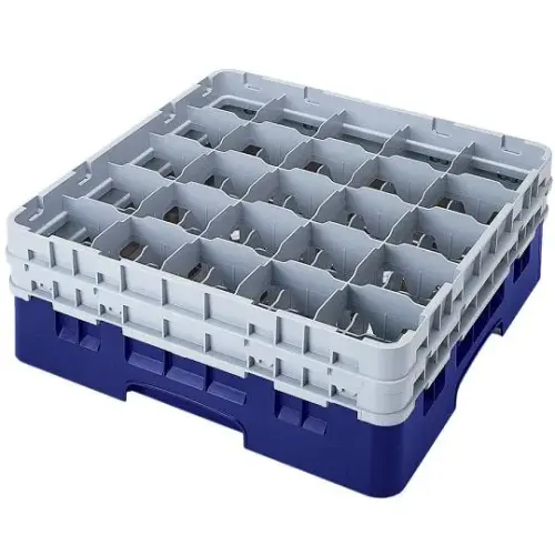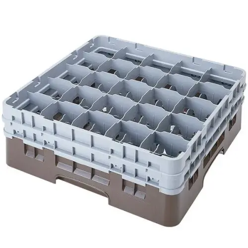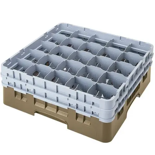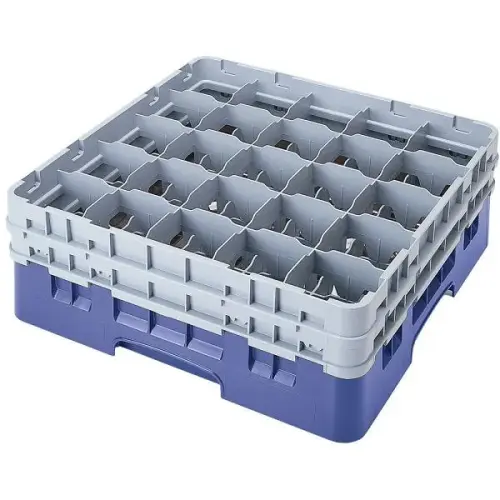 This Cambro Stemware & Tumbler Glass Rack - Camrack [20S800-416] is a dish rack for cups with 20 compartments. Each compartment can hold a cup with a max diameter size of 3 7/8 inches and a max height of 8 1/2 inches. This square shaped cup rack fits in most commercial dish washers and makes cleaning cups and other glassware extremely easy. Thanks to the polypropylene plastic used in this construction, this cup rack is extremely durable and heat resistant. Comes in a set of 2.