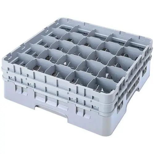 This Cambro Stemware & Tumbler Glass Rack - Camrack [20S958-151] is a dish rack for cups with 20 compartments. Each compartment can hold a cup with a max diameter size of 3 7/8 inches and a max height of 10 1/8 inches. This square shaped cup rack fits in most commercial dish washers and makes cleaning cups and other glassware extremely easy. Thanks to the polypropylene plastic used in this construction, this cup rack is extremely durable and heat resistant. Comes in a set of 2.