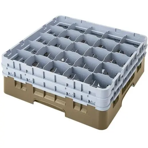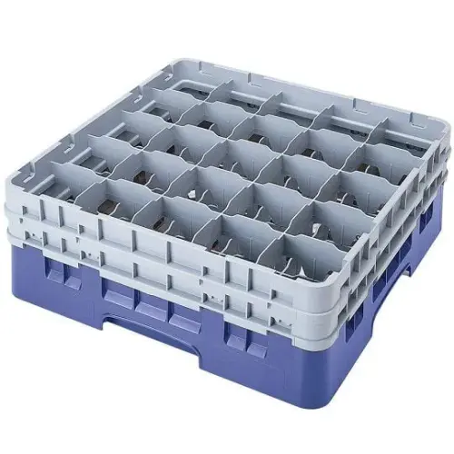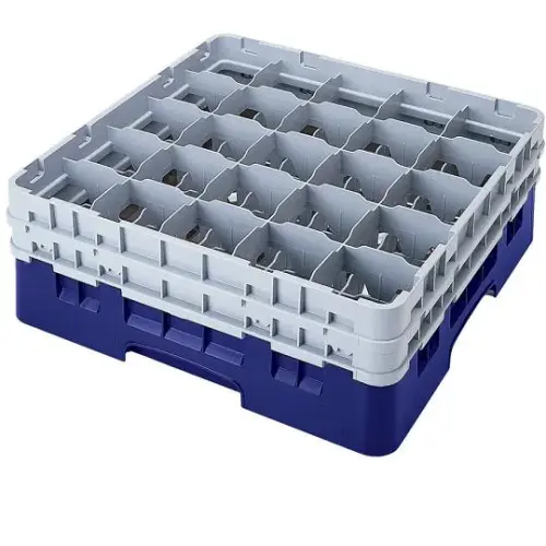 This Cambro Stemware & Tumbler Glass Rack - Camrack [20S958-416] is a dish rack for cups with 20 compartments. Each compartment can hold a cup with a max diameter size of 3 7/8 inches and a max height of 10 1/8 inches. This square shaped cup rack fits in most commercial dish washers and makes cleaning cups and other glassware extremely easy. Thanks to the polypropylene plastic used in this construction, this cup rack is extremely durable and heat resistant. Comes in a set of 2.