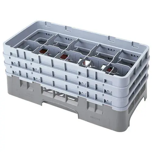 This Cambro 4.125" Half-Size Stemware & Tumbler Glass Rack - Camrack [8HS958-416] is a dish rack for cups with 10 half-size compartments. Each compartment can hold a cup with a max diameter size of 4.125" and a max height of 10.13". This rectangle shaped cup rack fits in most commercial dish washers and makes cleaning cups and other glassware extremely easy. Thanks to the polypropylene plastic used in this construction, this cup rack is extremely durable and heat resistant. Comes in a set of 2.