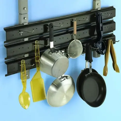 This Cambro Camshelving Shelf Extender [CSWS36EK-110] helps organize kitchens and reduce clutter while providing valuable storage space. Due to it's polypropylene construction the extender will not rust after extended use. This extender attaches either to the wall itself or to a Camshelving wall shelf unit. It can be used to hang a variety of kitchen tools for easy storage and organization.