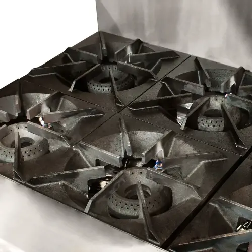 Welcome to the Elite Restaurant Equipment selection of Commercial Ranges. This Cooking Performance Group 60-CPGV-10B-S26 gas range features (10) 30,000 BTU burners to provide you with optimum cooking performance! 12" x 12" heavy duty cast iron grates allow you to easily slide heavy pots from one section to another, while a unique anti-clogging pilot shield ensures that you get the most out of the open top burners. Elite Restaurant Equipment ensures the durability, quality, and efficiency of this range.