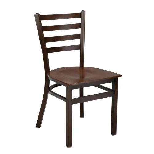 This G & A Seating Santos Chair [513W] is the perfect addition to your business. Reinforced metal chairs are the perfect touch to your commercial restaurant establishment. Weather you are using these chairs for a bar, or just standard dining, the wood finish will add that touch of elegance you are looking for. When shopping for a chair know what material will suit your ambiance best. Comes in a pack of 12.