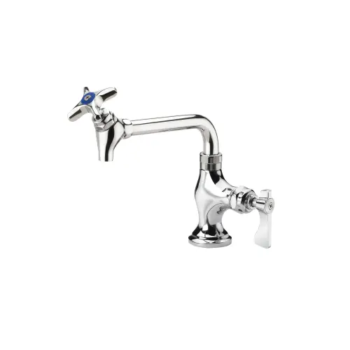 Krowne Royal Series Deck Mount Pot Filler Faucet, 6" Spout with Shut-Off Valve, Cross Handle, Ceramic Cartridge Valves, Wall Mounting Kit Included, Low Lead Compliant. 6" spout with shut-off valve. Fits in 3/4" hole. 1/2" NPS male inlet. Ceramic cartridge valves. Deck mounting kit included. Low Lead Compliant. Elite Restaurant Equipment ensures that this product, 16160L, is easy to use and install.