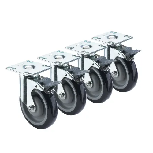 | Item: | Krowne 28260S - Heavy Duty 3-1/2" x 3-1/2" Universal Plate Caster w/ Front Brake - 5" Wheel - Set of 4 |
