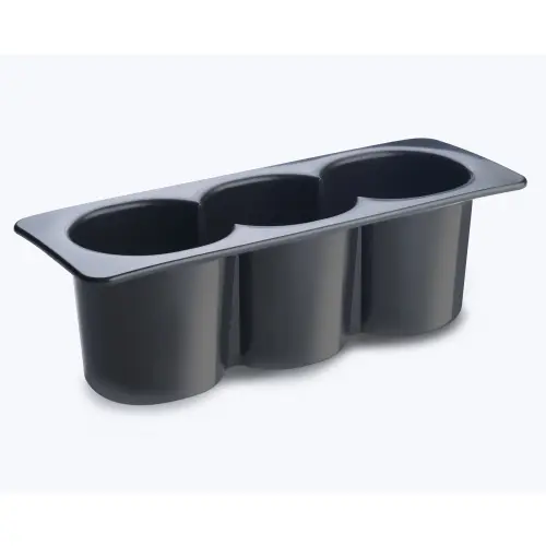 Krowne Three Compartment Bottle Wells for Ice Bins, Black ABS Plastic, Fits 3 Standard Size Bottles. Bottle Wells for Ice Bins (Single). Fits Ice Bin liners up to 14-7/8" front to back. Overall flange size 16" x 5-1/2". Holds 3 containers. Elite Restaurant Equipment ensures that this product, 30-500, is easy to use and install. Case of 2.