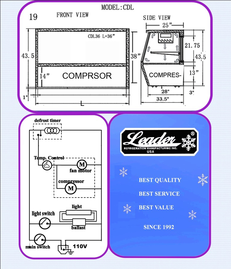 This 48" single duty refrigerated deli display case is exactly what any deli owner wants. I purchased this display case some 8 months ago and the temperature has remained very consistent, even in the summer months. My favorite thing about this Leader unit is that the unit does NOT make much noise. On another positive not, my electric bill has dropped a fair amount. I will be ordering again from Elite Restaurant Equipment soon for my other deli needs!!!