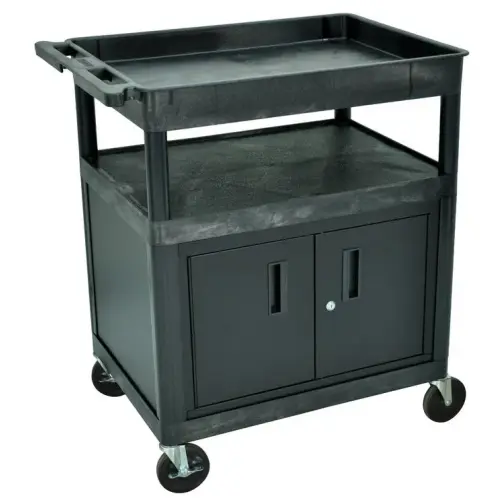 | Item: | Luxor TC122CB - Plastic 3 Shelf Utility Tub Cart w/ Cabinet - Black |