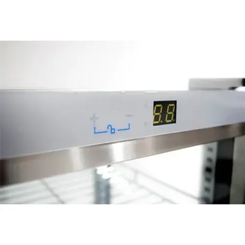 The 2 layer hollow tempered glass door allows customers to see your product clearly while conserving consistent temperatures within the countertop merchandiser. The self-closing swing door increases efficiency since you never have to think about cold air getting out. A built in lock and key is included.