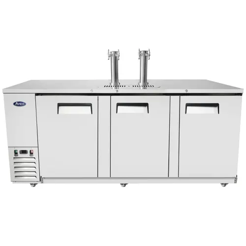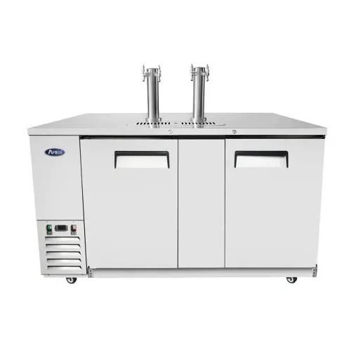 The Atosa MKC90 - 90" Dual Faucet Beer Dispenser Keg Cooler - Stainless Steel is a great way to serve ice cold, crisp draft beer without building out a custom tap system that can cost a fortune. Easily fill pint glasses and pitchers with all types of microbrews, and other brews. This beer dispenser / kegerator is made with a stainless-steel top, which makes it easy to clean and durable.