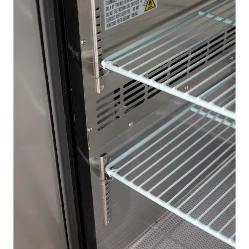 This model holds a (2) 1/2 kegs of beer that is stored behind a stay-open and self-closing door. This helps your employees load product without the door closing on them and ensures the door closes appropriately when quickly reaching in without fully opening it. The tight seal prevents energy loss and the locks prevent theft during off hours.
