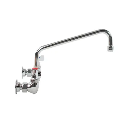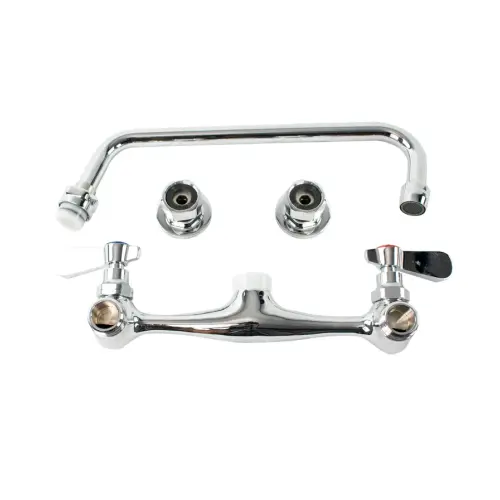 The Universal 10” low lead wall mount swing spout faucet is great for cleaning up tasks around the kitchen. This wall mount faucet is compatible with all stand up commercial sinks that require a wall mount faucet. The flow rate of the faucet is 2 GPM, the connection is 1/2” NPT. The flow rate will fill up a sink quickly, great for dish washing or other cleaning tasks. This wall mount swing spout faucet fits 8” center holes on a sink.