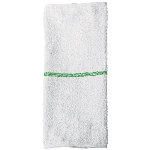 These green-striped bar towels are made of 100% cotton for the best combination of absorbency, comfort, and repeated use. They are ideal for countertops, tables, and other high-traffic areas in your restaurant or bar. A green stripe lets you designate a particular towel for a specific task, reducing the risk of cross-contamination when cleaning.