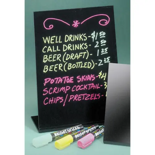 Attract attention to your food and drink specials, featured desserts, or exciting upcoming events with this Cal Mil 216-13 black write-on tabletop easel. Stop storing piles of pre-printed signs, or wasting reams of paper by printing new special sheets everyday! The Cal Mil 216-13 write-on easel wipes down easily as your needs change.