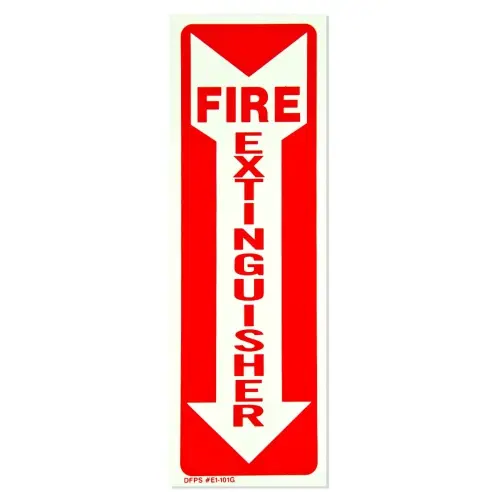 You are reviewing: Universal 472E1101G - White on Red Glow-in-the-Dark Fire Extinguisher Adhesive Label with Arrow - 4" x 12"