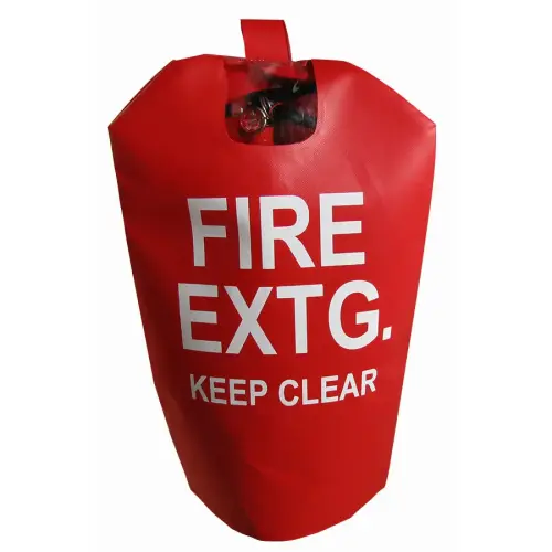 Protect your fire extinguisher from the elements with this 16" x 27" fire extinguisher cover with window. It's made fo fabric-reinforced PVC for durability, and features quick-release velcro fasteners. It's water resistant, mildew resistant, and Anti-staph and fungal resistant. This fire extinguisher cover is bright red for easy visibility, and features a clear viewing window so you can quickly check the charge status. It measures 16" x 27", and fits 15 to 30 lb. fire extinguishers.