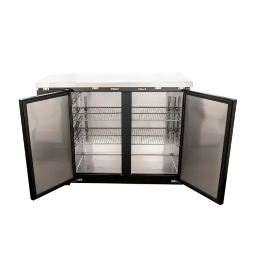 The Universal UBB-24-48F undercounter back bar refrigerator is the answer for additional refrigerated storage behind your bar. The two door undercounter refrigerator fits under counter tops safely with proper spacing for ventilation. This model provides 13 cu. ft. of refrigerated storage. The 48-inch size is compact, great for limited spaces. This narrow undercounter back bar refrigerator includes a digital thermostat.