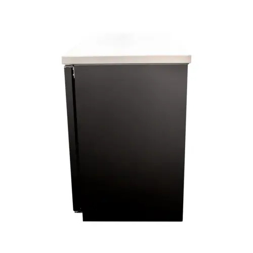 This back bar undercounter refrigerator’s exterior is constructed from black coated steel and topped with 304 stainless steel. The interior is made from corrosion resistant and rust proof 304 stainless steel. This construction makes cleaning easy, inside and out.