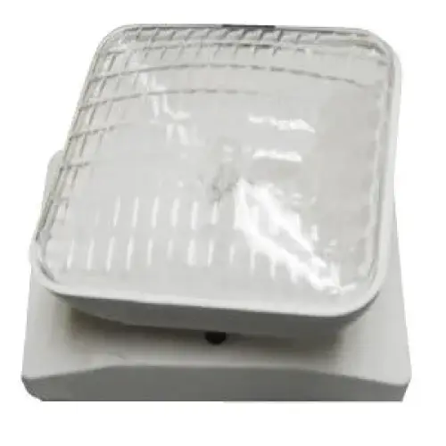 This remote light head may be installed alone or in conjunction with other exit and emergency products designed to operate remote heads. It features an adjustable and rotatable design so you can direct the light exactly where you need it. Thanks to a high-performance smooth thermoplastic reflector and glass lens, optimal light distribution is achieved! This remote light head is ideal for use in retail, office, institutional, hospitality, and other commercial situations. The housing is constructed of a flame-retardant, injection molded white thermoplastic material. This remote light head surface-mounts and will fit most standard junction boxes. Requires a 6V input; the bulb is 5.4 watts. The base measures 4 1/2" x 6". UL Listed for damp locations, and backed by a 1 year warranty.
