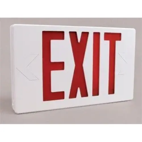 This LED exit sign is a double faced sign with a white housing and red letters. It is ideal for use in retail, office, institutional, hospitality, and other commercial situations. The energy-saving LED design is simple and hassle-free, and will help you provide the exit strategy you desire for years to come. The housing is constructed of injection-molded, V-O flame retardant thermoplastic material, and comes standard with a universal mounting canopy for side or top installation. The LED lamps consume less than 4 watts of electricity, and will last 25 years or more! The battery backup consists of a Nickel-Cadmium (NiCad) system that charges during normal operation. When a power failure occurs, the electronic circuit on this LED exit sign senses this and automatically switches to battery power for up to 90 minutes of uninterrupted service! Once power is restored, the unit switches back to normal operation. A "push-to-test" feature allows you to check for proper operation of this feature. This LED exit sign requires a 120-volt electrical connection. It is UL Listed for damp locations, and backed by a 5-year limited warranty