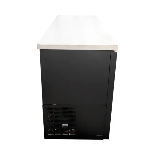 This back bar undercounter refrigerator’s exterior is constructed from black coated steel and topped with 304 stainless steel. The interior is made from corrosion resistant and rust proof 304 stainless steel. This construction makes cleaning easy, inside and out.