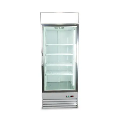 This 81" Universal GRDF81SC Swing Glass Door Reach-in Display Freezer is a wonderful addition to your commercial establishment. This glass door reach-in freezer features stainless steel construction and has 3 self-closing glass swinging doors. The doors are designed to ease user fatigue. This 3 glass door reach in freezers includes internal adjustable shelves can hold a great quantity of your kitchen essentials. The shelves are made from heavy-duty polyethylene-coated wires. The refrigerator holds -10°- 0°F for the best in food preservation. This model reach-in freezer is often used to display frozen treats such as ice cream, frozen foods, and more. This glass door reach in freezer is perfect for any food service establishment. This item has been white labeled to be Universal and may or may not have a Universal logo. The logo may be maxx cold or other. We white label this product to maintain optimal service as well as a 5 year warranty.