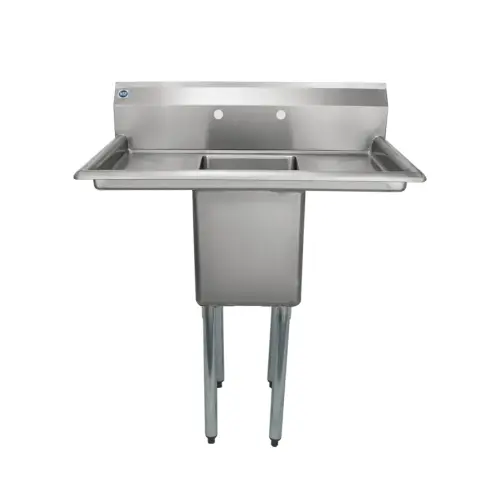 This stainless steel sink comes with one bowl/compartment, great for standard washing, rinsing, and sanitizing. This practice helps ensure your dishes, equipment, and glassware are clean and ready for your guests. The compartment is 13 inches deep, good for tall items. The 24 inch width is great for establishments with limited space. This commercial sink is often used in residential laundry rooms as well, providing industrial, sturdy, and commercial quality.