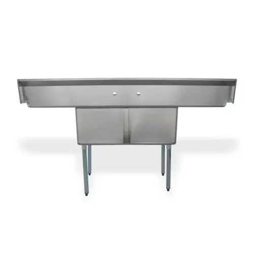 This commercial sink with two compartment includes two 18 inch x 18 inch drainboards on the right and left side. The drainboard is often used to place clean or ready to be cleaned dishware.