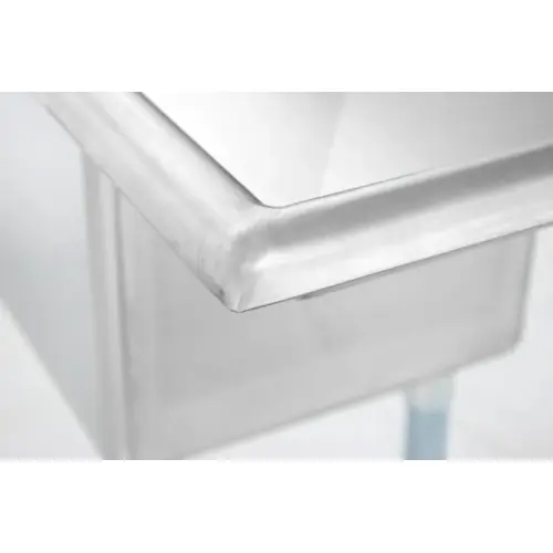 This sink includes rounded corners in the sink bowl to make cleaning easier. This sink also includes angled bends at the bottom of the bowl for better drainage.