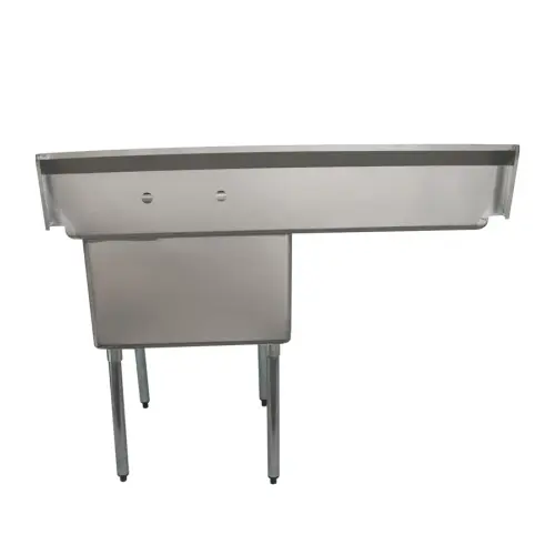 This commercial sink with one compartment includes a 24 inch x 24 inch drainboard on the right side. The drainboard is often used to place clean or ready to be cleaned dishware.