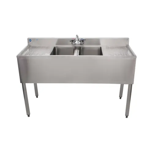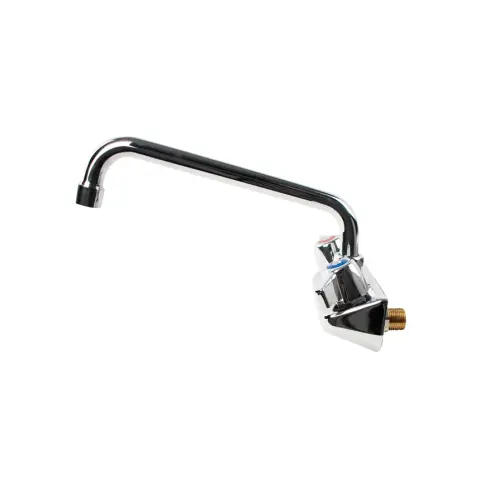 The Universal BFC-10 10” low lead underbar sink faucet is great for clean up tasks in the kitchen. This wall mount faucet is compatible with all stand up commercial sinks that require a wall mount faucet. The flow rate of the faucet is 2 GPM, the connection is 1/2” NPT. The flow rate will fill up a sink quickly, great for dish washing or other cleaning tasks. This wall mount swing spout faucet fits 4” center holes on a sink.
