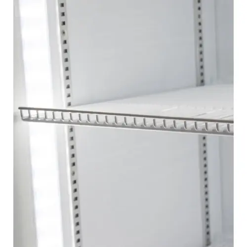 This unit includes interior LED lighting located in the middle of the two doors. The LED lights illuminate the products, so customers see them with the best light. Studies have shown LED lighting on merchandising equipment increases impulse purchases.