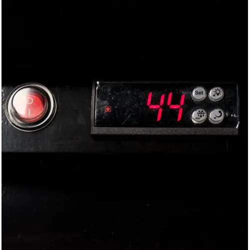 The temperature control is easy to use. It allows you to control the temperature between 32 and 38 degrees Fahrenheit.