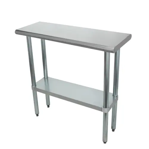 the Universal 36" x 14" stainless steel commercial work table with undershelf adds additional work space anywhere. Perfect for prepping, chopping, sorting, and assembling. The weight capacity, working height, and easy to clean table top is efficient and effective for organization. Optimize your work flow with this 36 inch solid stainless steel commercial work table.