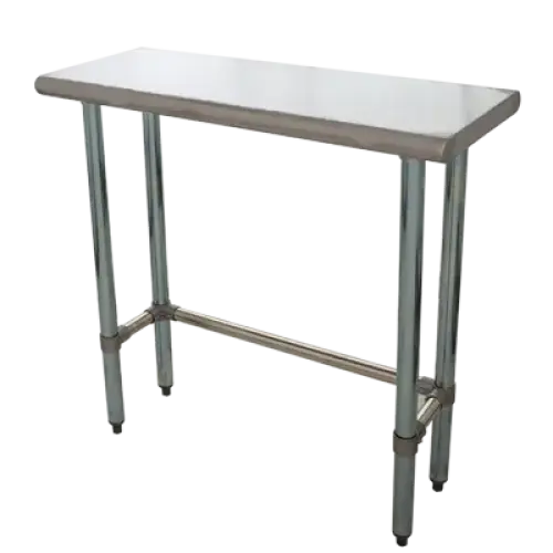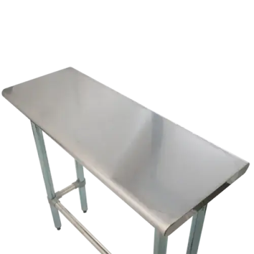 This commercial work table is a curved lip design with edges that are welded and grounded smooth, keeping your workplace safe.