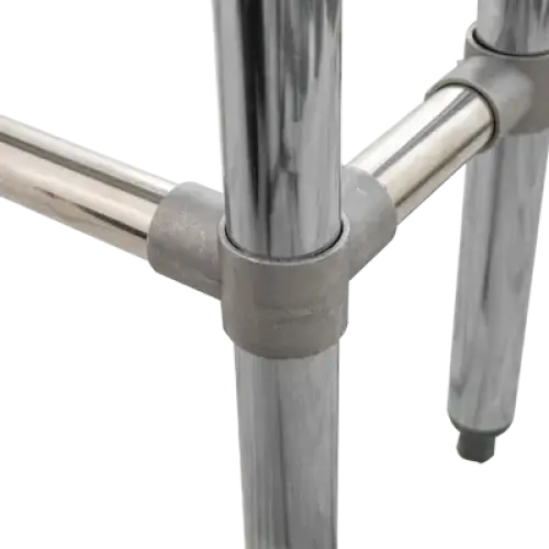 This commercial work table includes galvanized steel legs and sockets which are corrosion resistant. These work table legs are durable, manufactured for heavy duty commercial usage. The legs include adjustable plastic bullet which allow you to level the table on uneven floor surfaces for maximum stability and weight capacity.