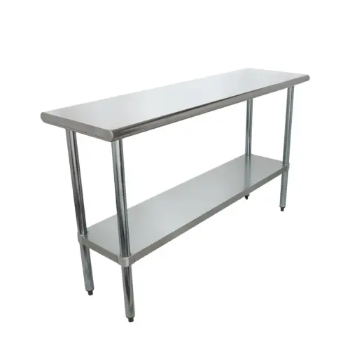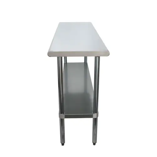 This commercial work table is constructed from heavy duty 18 gauge stainless steel. The table top has a high weight capacity of 750 lbs. The stainless steel type is 430SS which is the easiest to clean. The construction is corrosion resistant and with not rust when maintained properly. The design is sleek and modern while keeping its optimal usage foundation. This model complies with food safety regulations.