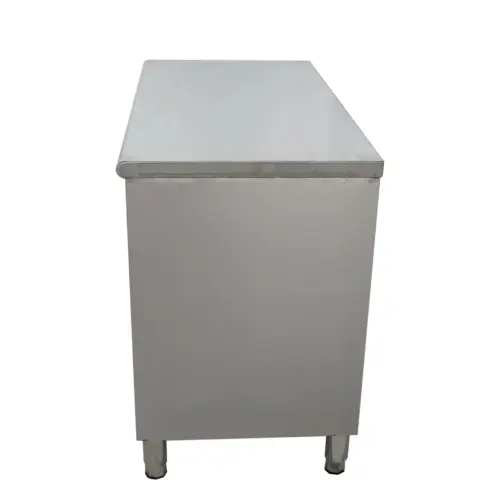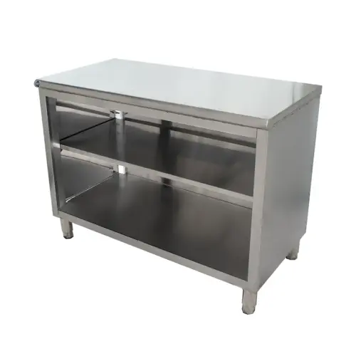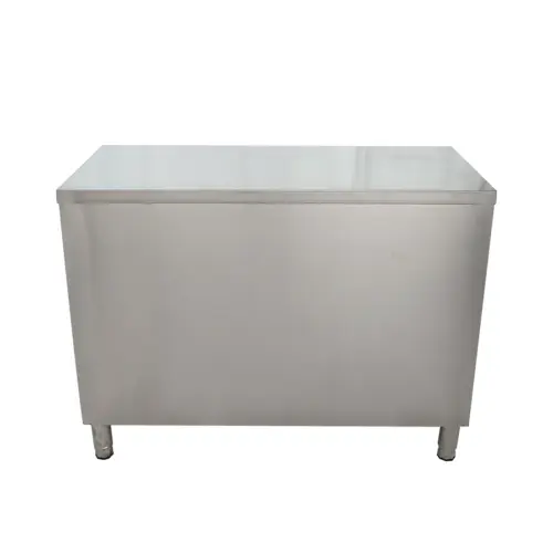 This Universal ST-324-48-O - 24" X 48" Stainless Steel Storage Cabinet - Open Front - comes with the option of sliding/swinging doors, or no doors at all. This storage cabinet is ideal for dishes, glasses, detergents and anything else you might wish to put in there. This item can be used as a work top table because of its 36" height. It saves space in any kitchen and cleans easy because of the stainless steel. Comes with 1 shelf for 2 levels of storage.