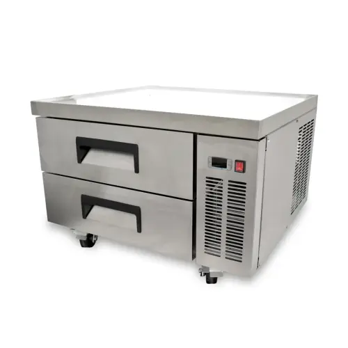 The Universal UCB48 48” 2 drawer refrigerated chef base provides efficient and convenient production in your commercial kitchen. Chef base refrigerators are a convenient place to hold and store foods exactly where they are needed. This refrigerated chef base is a solution for any productive food service business interested in increasing efficiency. Chefs often use refrigerated chef bases to place countertop cooking equipment on top. The chef base refrigerator is used to store ingredients and achieve success. This model chef base is sleek, functional, and modern in design. The Universal refrigerated chef base is a great way to keep your most frequently used ingredients close by.